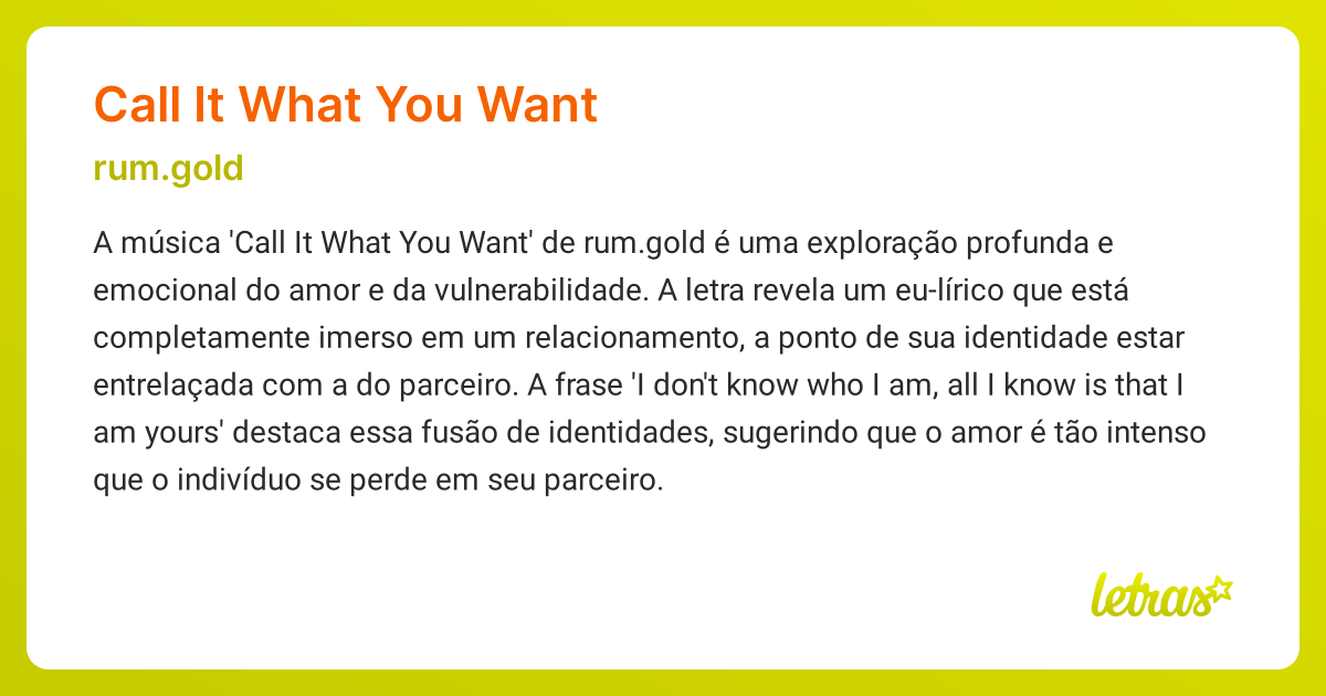 CALL IT WHAT YOU WANT (SIGNIFICADO) rum.gold